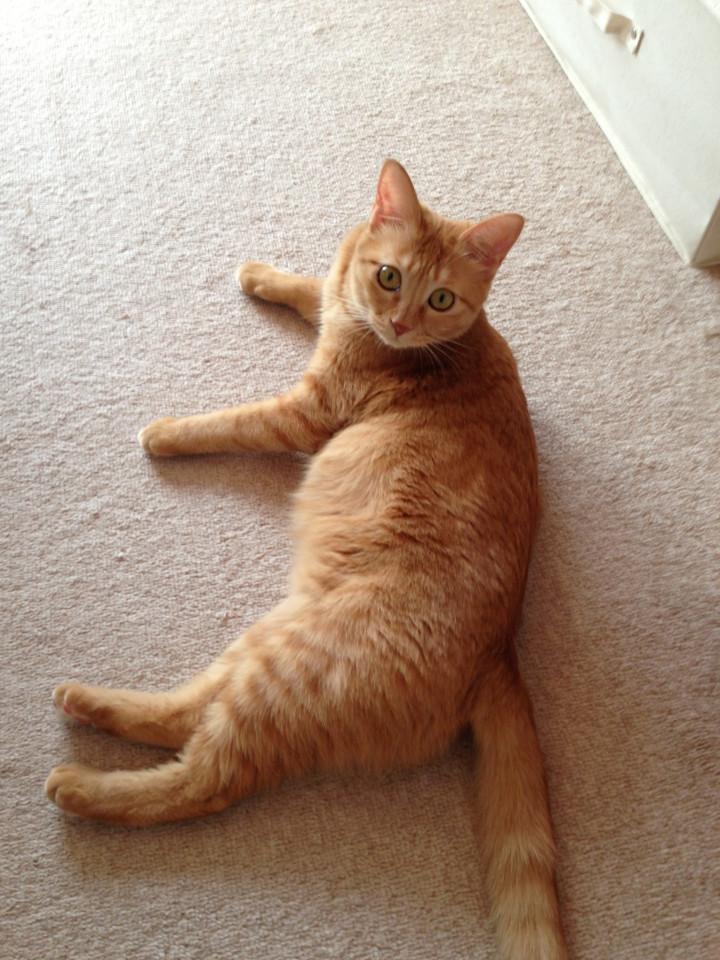でも、まるはその家族、待ってなかったと思う、多分ね。まるは、異常なくらい怯えていたって。撫でようと手を出すと、悲しそうに鳴いて、ケージの隅でおもらししながら、震えてたって。唯一の救いは、その辺に捨てられなかった事。私は、先生に申し出て、置いてけぼりの、茶トラをもらうことに。先生、心配してたけどね、人に懐いていないよって。