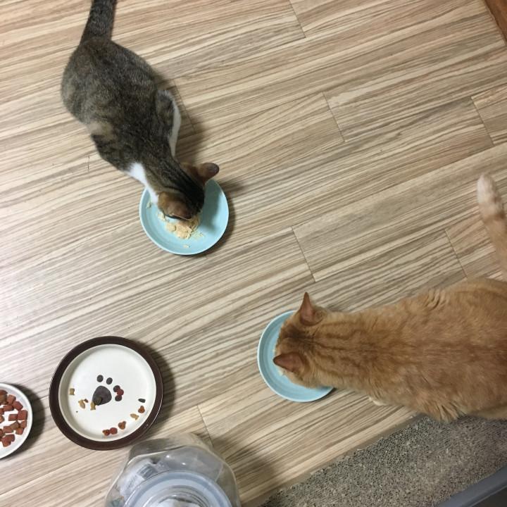 まるは、新入りすずとも、仲良くしてくれる。まるの後をついて行ったり、仲良く並んでご飯食べたり(^^)すずも、やっぱり、まだ、子供だから、女の子のまるが気になって仕方ない(^^)