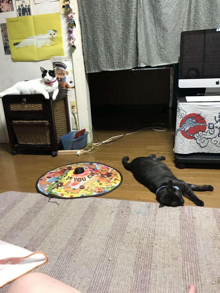 少し夜涼しくなってきたので、いつもは各々好きな場所でバラバラに寝るのに。。。一緒にくっついて寝とる💦