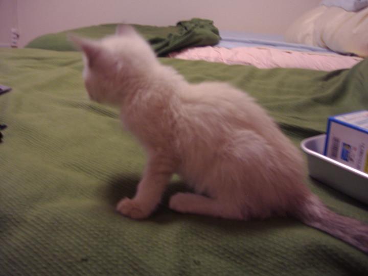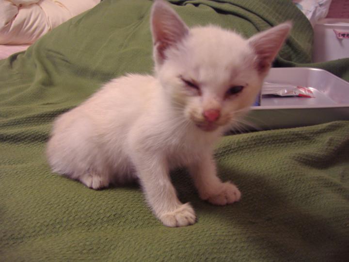 ある場所から、小さくて痩せている白い仔猫を急いで連れ帰った。