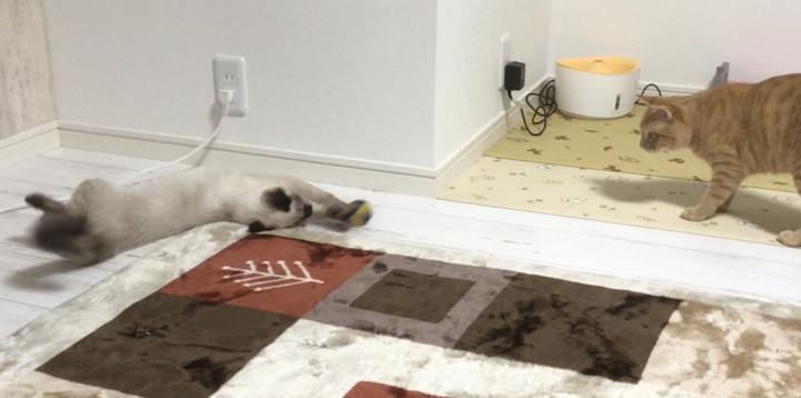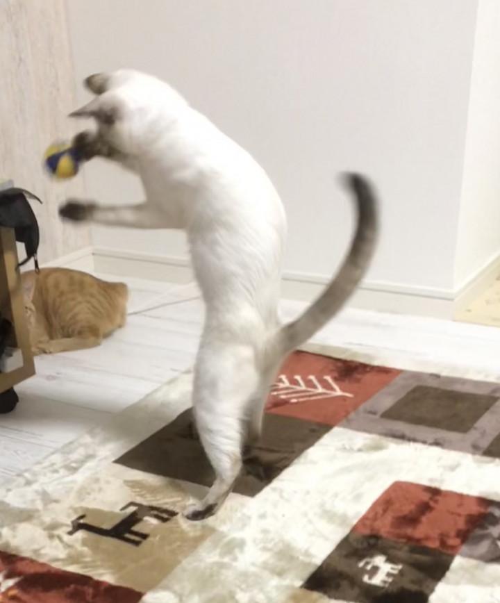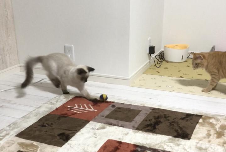 手で弾いて、それをまた追い掛ける遊びを繰り返しています