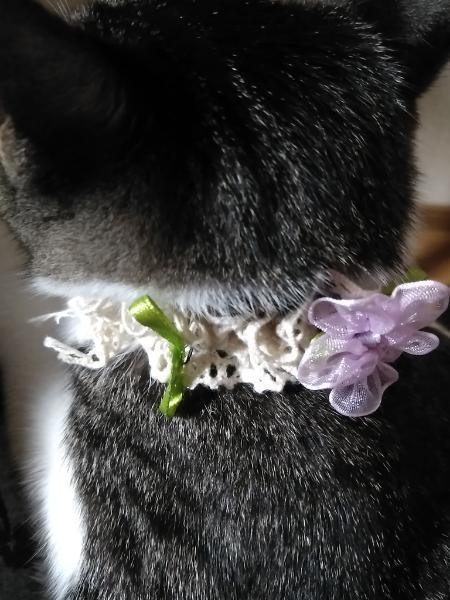昨日つけたラブリーな首輪のお花が1つ無くなってる(-""-)