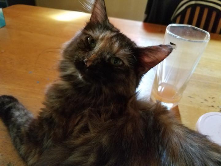 濡れた髪に、猫は反応するらしいのだ😸