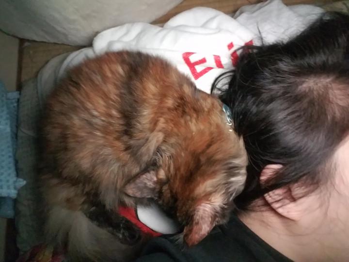 髪の上で寝始めた⁉️