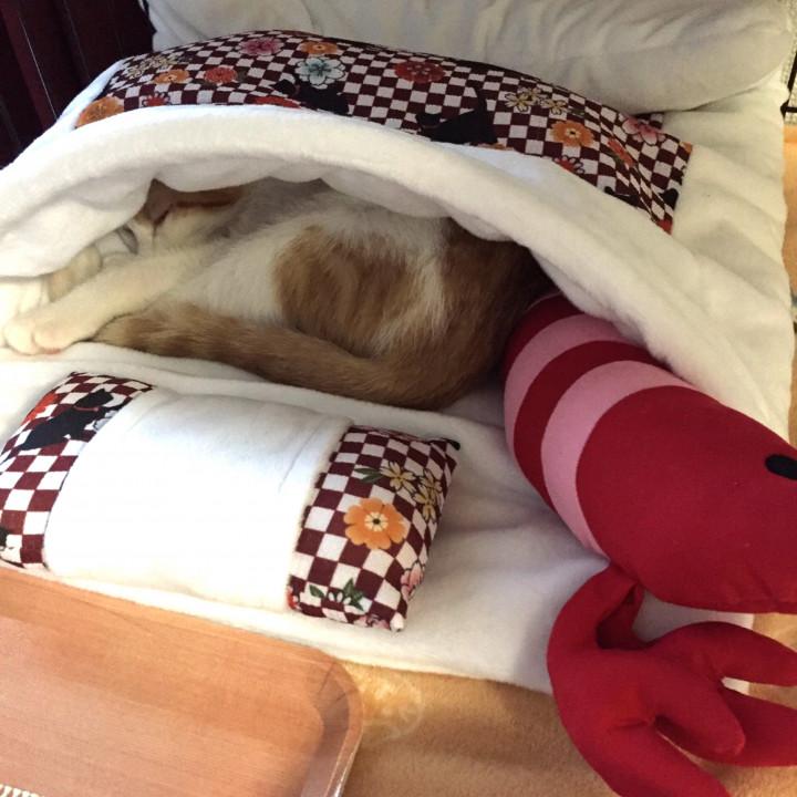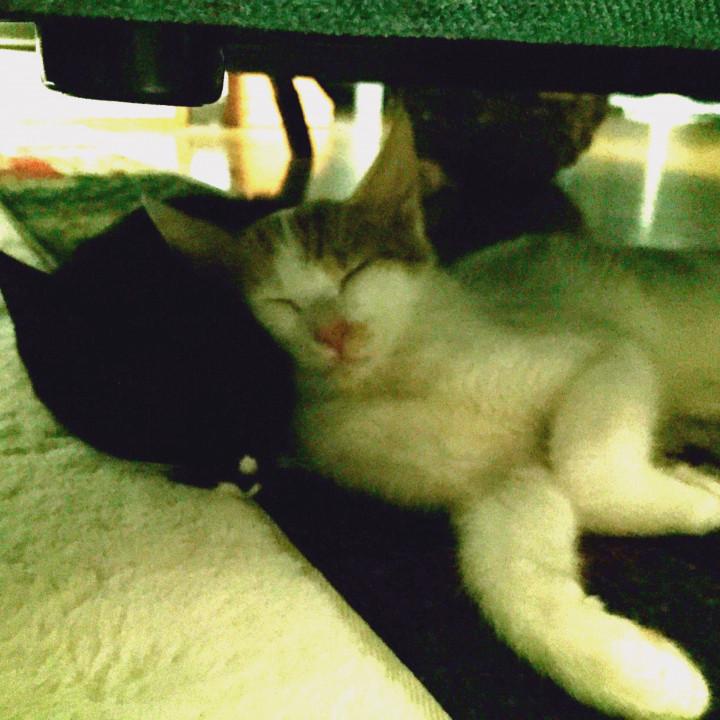 今、カーペットのある部分を2ニャンで
