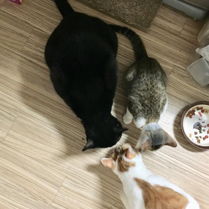 ある時、母猫がいつものように、ベランダでご飯を食べていて、そこへ、お腹をすかせた黒が、やってきて、もじもじしながら、母猫に擦り寄ると、物凄い威嚇の嵐。あ〜あ、黒は、自分の子供でしょ、もう少し、優しくしたら?