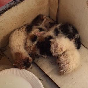 茨城の個人宅前の道路にダンボールへ入れられて遺棄されていた、乳飲み4にゃん😭
