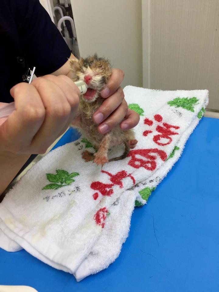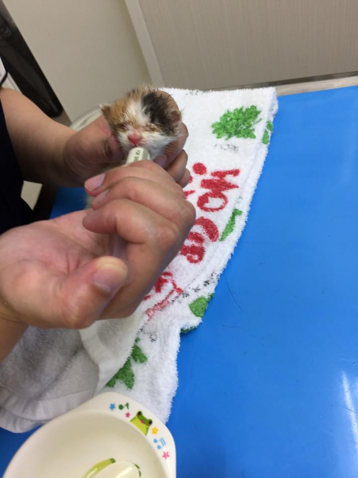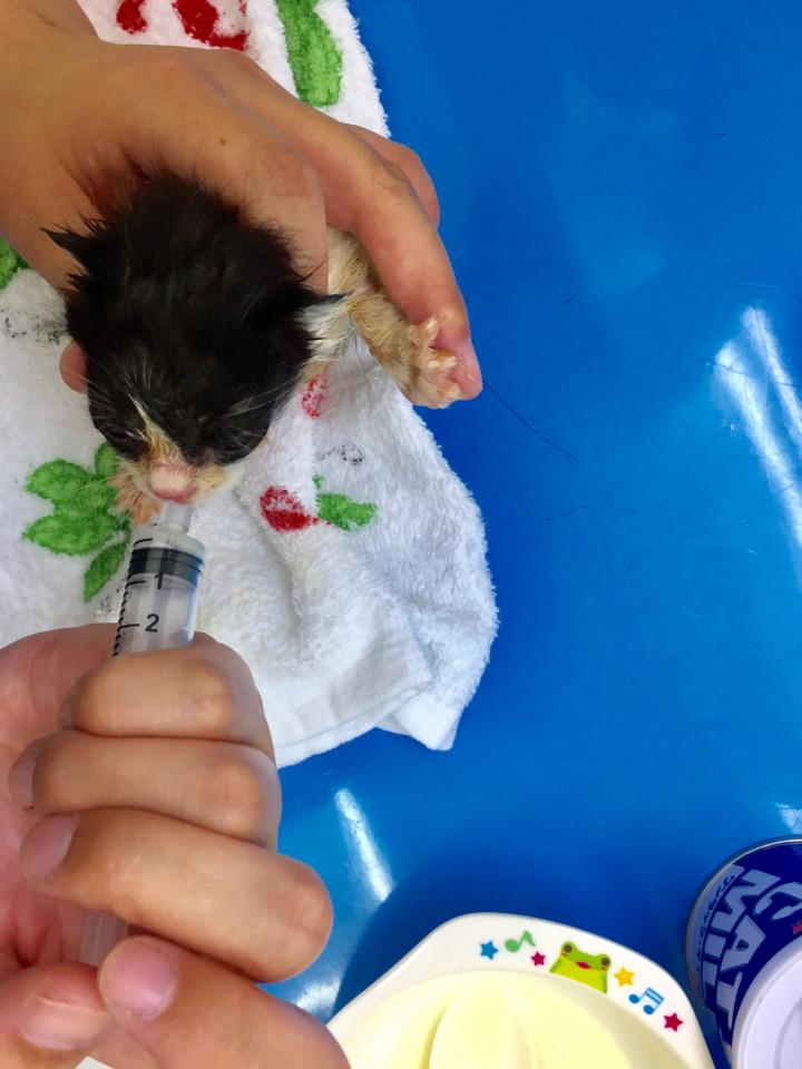 その後、ネットで調べて猫用ミルクをシリンジで与えても上手く飲まず。