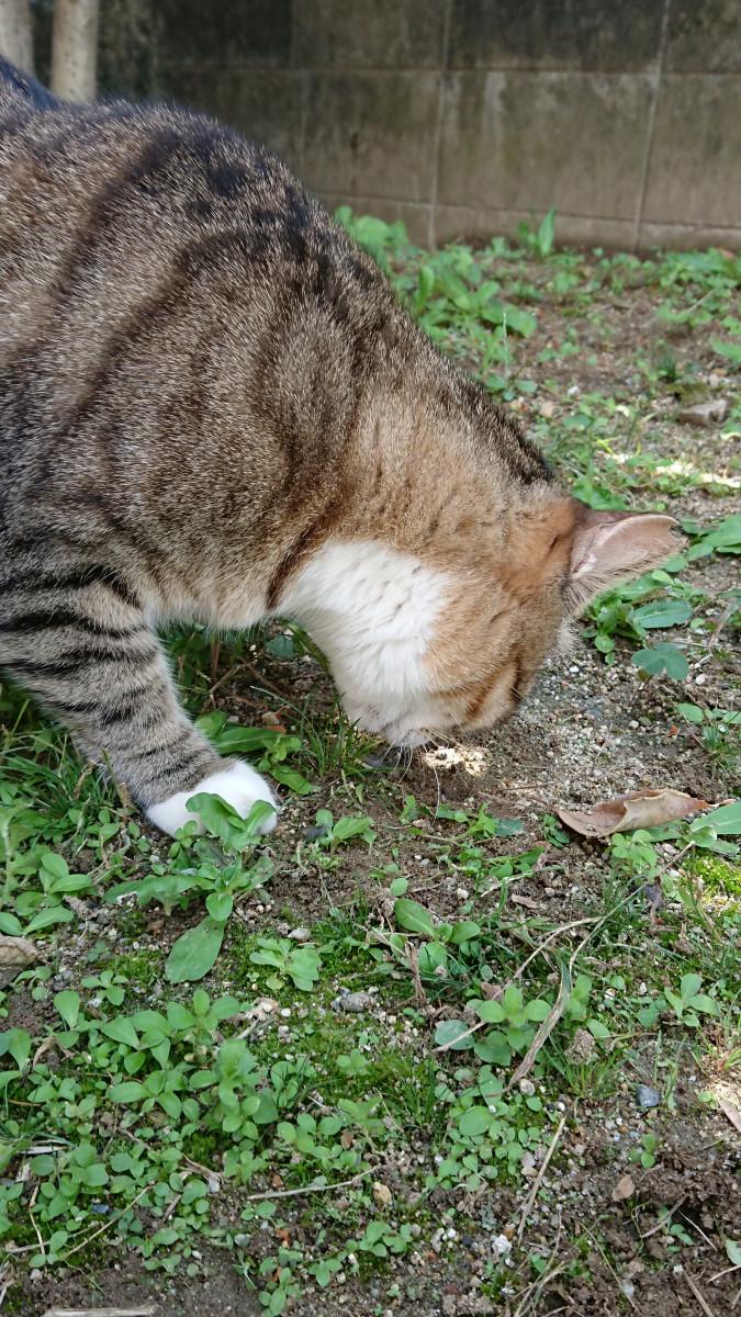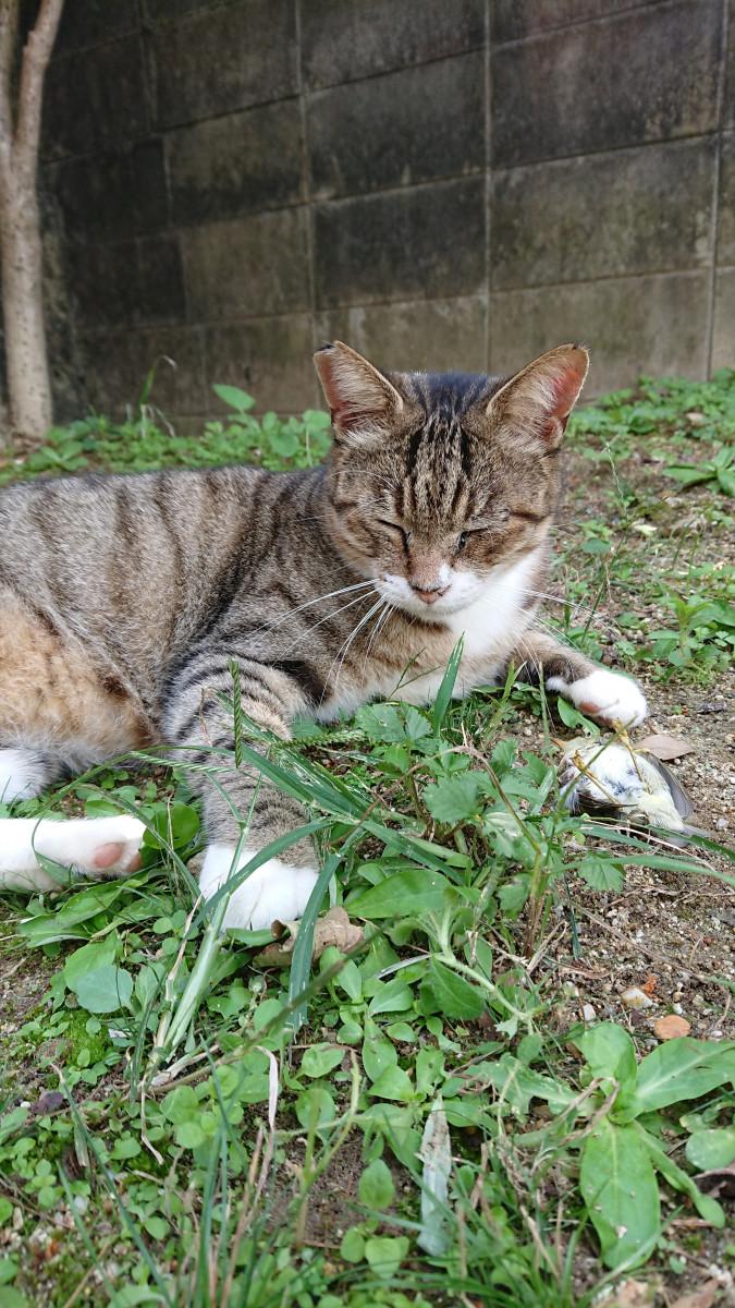 次男 「お母さん、猫3号がすずめくわえて門から入ってきた!でもまた門から出ていった!」