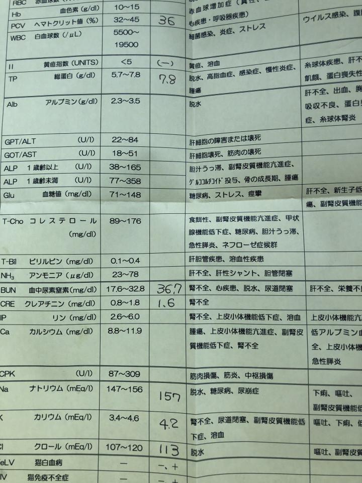前回、補液を1日置き、100㏄だったのを毎日75㏄に増やしたのでそれで維持できているみたいだから獣医さんから