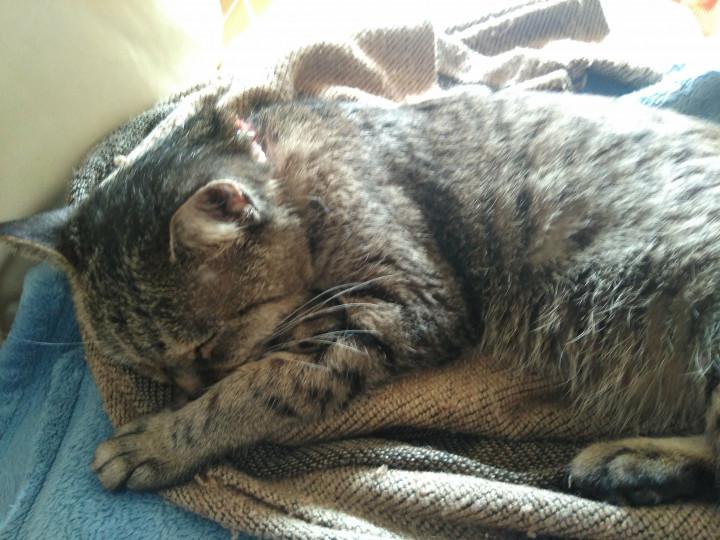帰ってから、ピースは珍しくフローリングの上に直でダラッ~としていました。