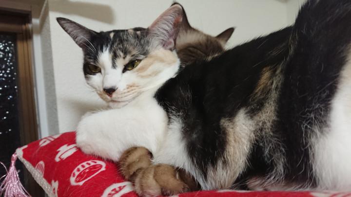 あんよを敷かれても怒らない小春さんを愛して止まない大福。。