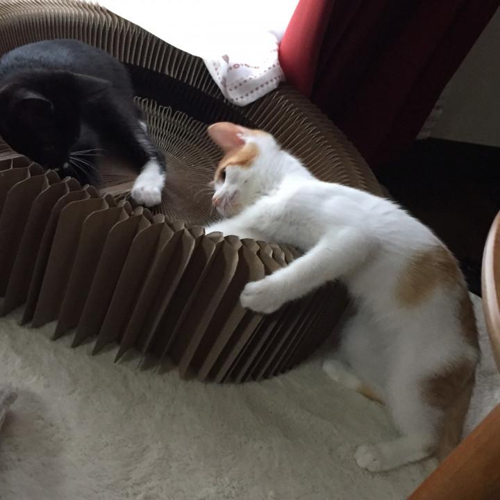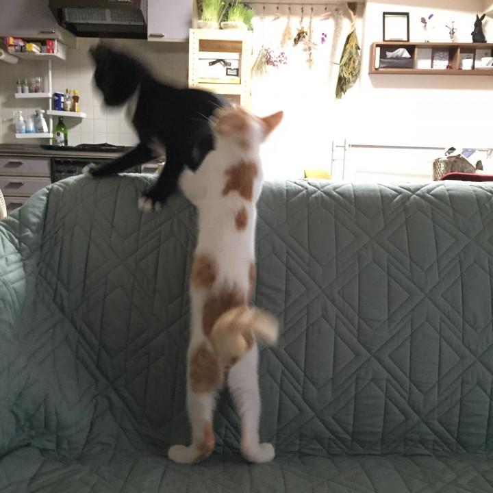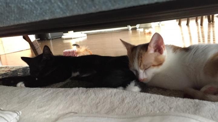 一昨日あたりから朝ケージで寝ころんでる2にゃんを触ると