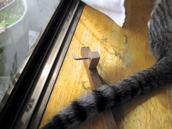 もともと防犯対策で窓のレール部分に棒をはめてました(こうする事で片側は窓が開かない)。