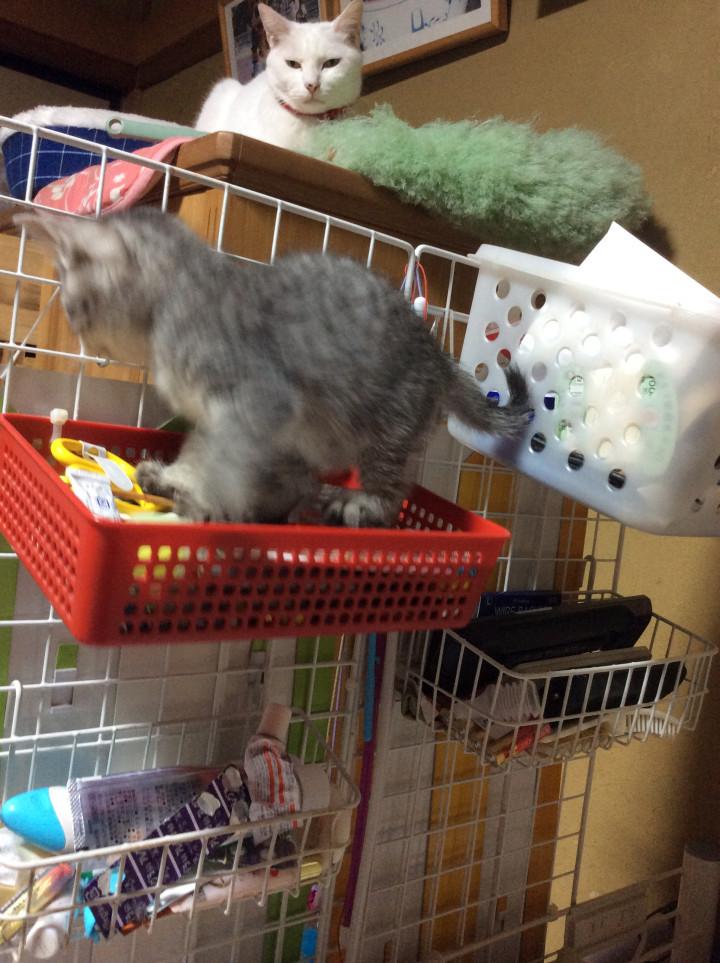 物入れの中で遊んでいます。((((;゚Д゚)))))))