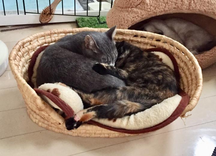 現在もうすぐ1歳になるエマちゃんと、トイプードルの老犬15歳二匹とも大人しく仲良しです。8月にハチとロクを迎えまして、朝方運動会を毎日しております。 エマちゃんが、猫語で、何やらニャ〜ニャ〜ウニャ...