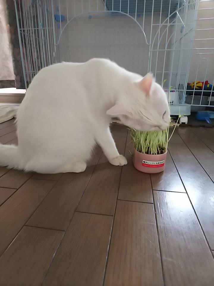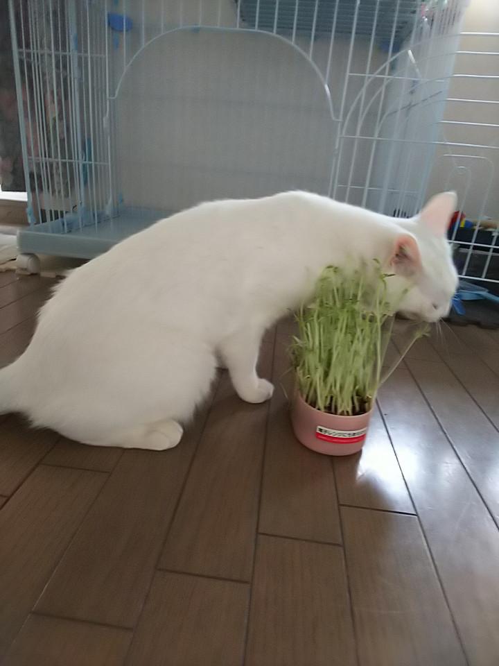 猫草買っても全部食べきる前に枯れちゃうし、今度からは2回目の栽培の豆苗あげよう。