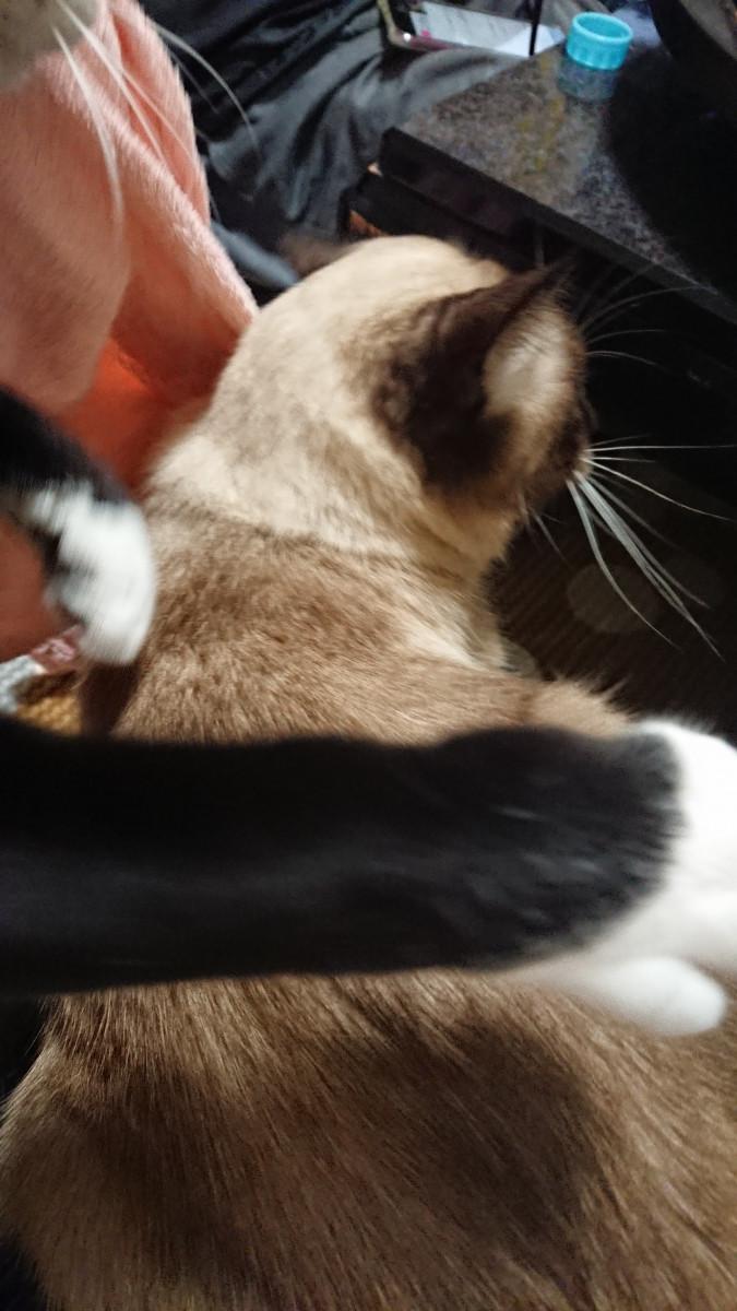 大福が日課の膝上まったりしていたらこてっちゃんの魔の手が…。。