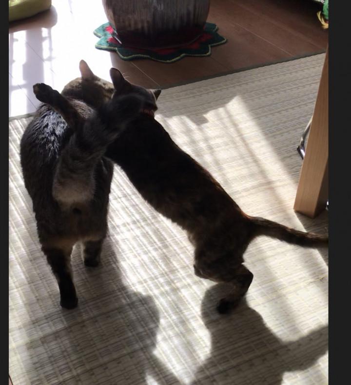 と朝の早よからキノ爺に飛びつくてんてん💨