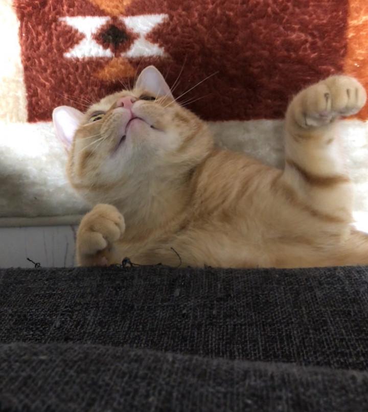 風牙の爪に安物ソファはひとたまりもなく、今日も傷口が増えていきます😌