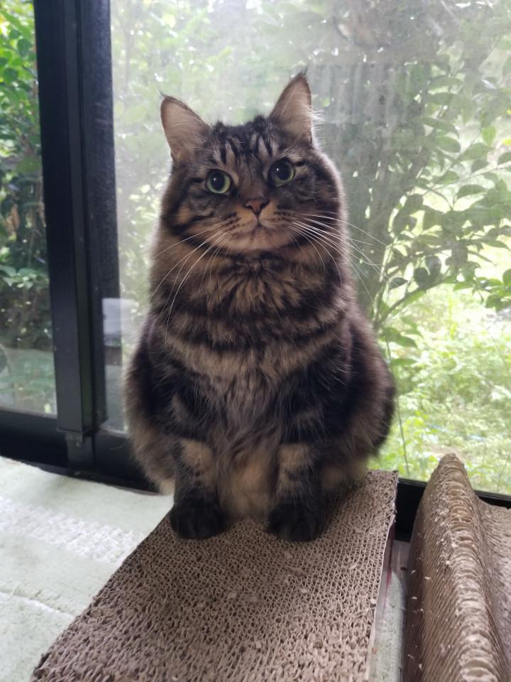 私の部屋に置いてあった爪研ぎを母親がきなこの為に窓際に持ってきました(笑)