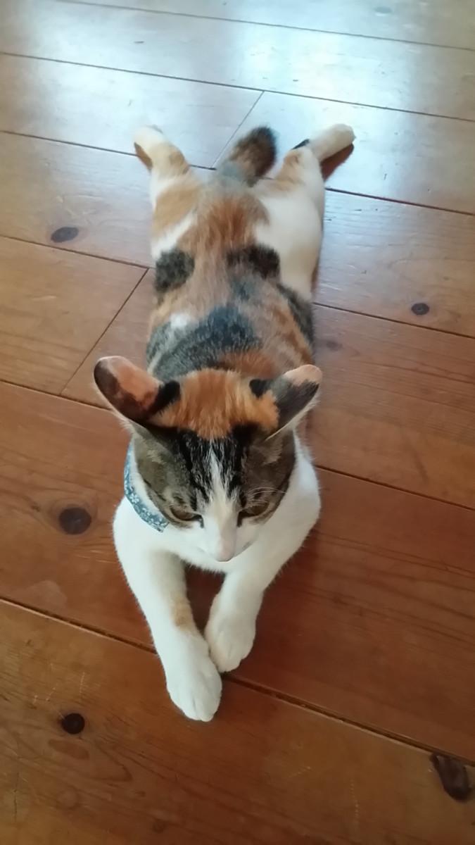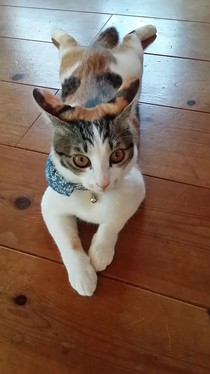 人生は三毛猫と共に ?の橋で待つ ひまわり これからの福(♀) 一緒に生きていける幸せをありがとう? (夫婦+娘+福)×ひまわり=幸せ の法則で毎日をおくります