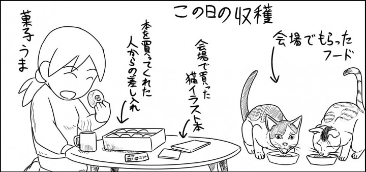 漫画はともかく猫オモチャはちょっと売れてたので、委託先の利益にもなったようで安心。