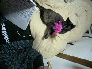 お布団にノートPCを持ち込んで作業しながら、更にさざびーと遊びます。
