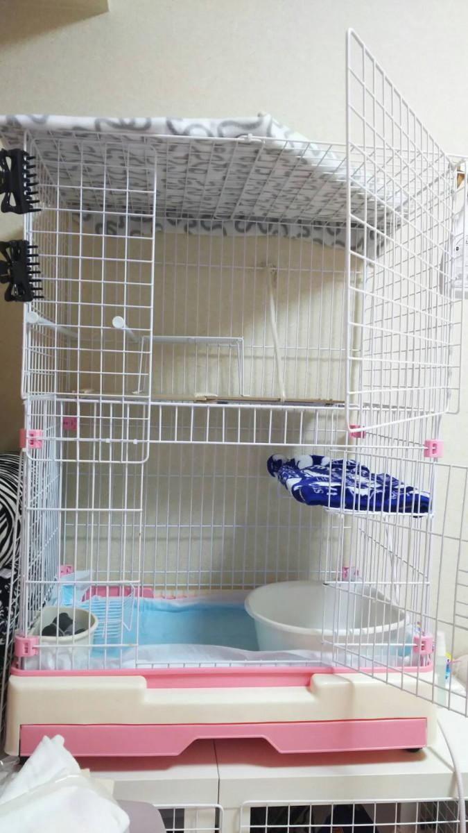 ケージはぷぅが使っていたフタつき1段のものしかないので買い替える予定。