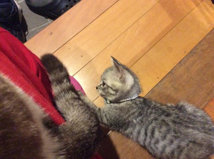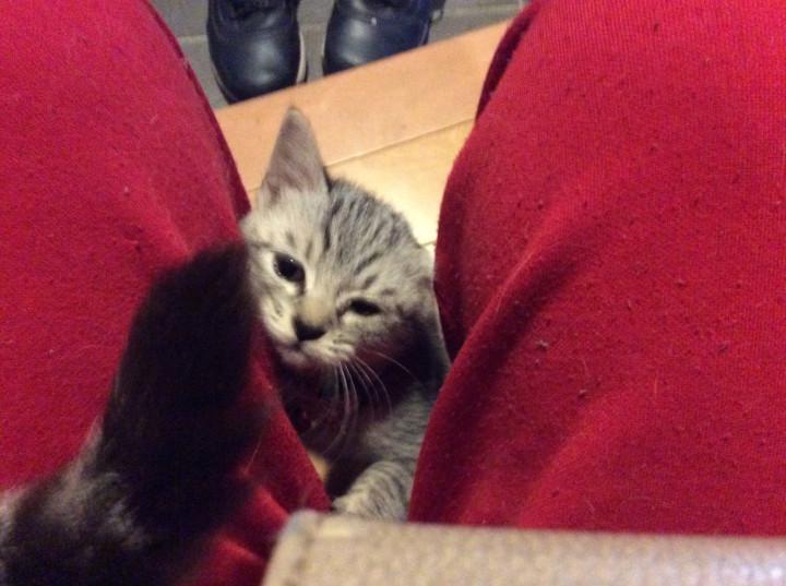 私の膝に乗ってきました。
