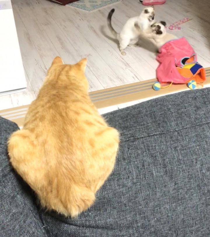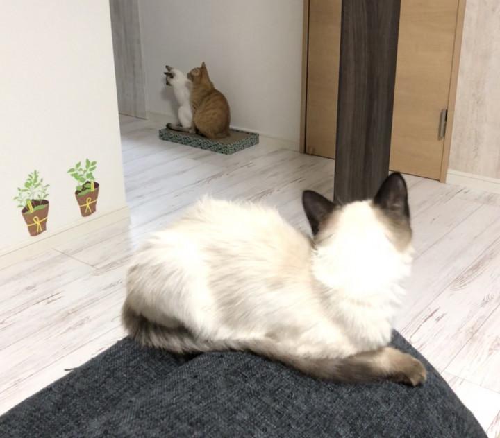 風牙は喧嘩に関わりたくないのか、そのままソファに降りて寝てしまいました😴