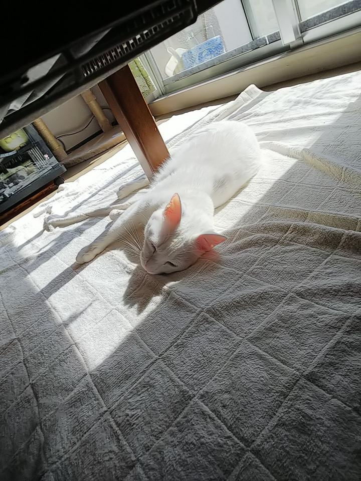自分だけでゴロンはしてくれるのに。私達が居ない時は布団で寝てるのに!