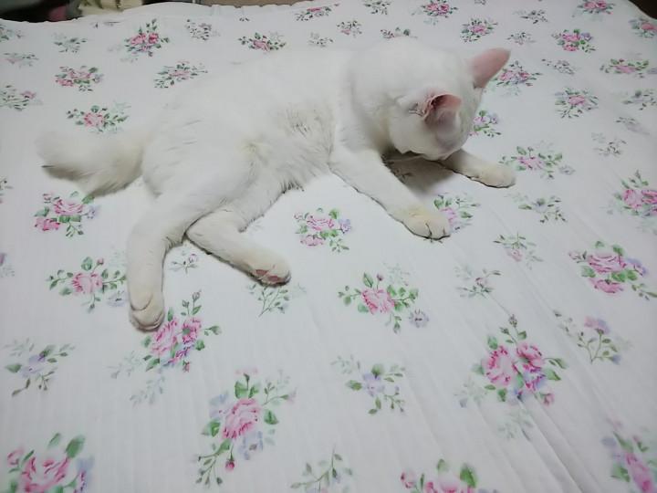 ちーちゃんは布団の中に入って一緒に寝たりしない子なので、布団が小さいからだと思い、セミダブルにしてみました。昨日、一瞬入ってくれたけど、なでなでしたらすぐ出ていった…(泣)。なでなでしないで放置がいい?