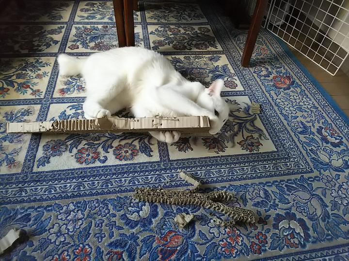 今朝、爪研ぎを破壊されました…マタタビを振りかけたのが原因だと思います(^_^;)。