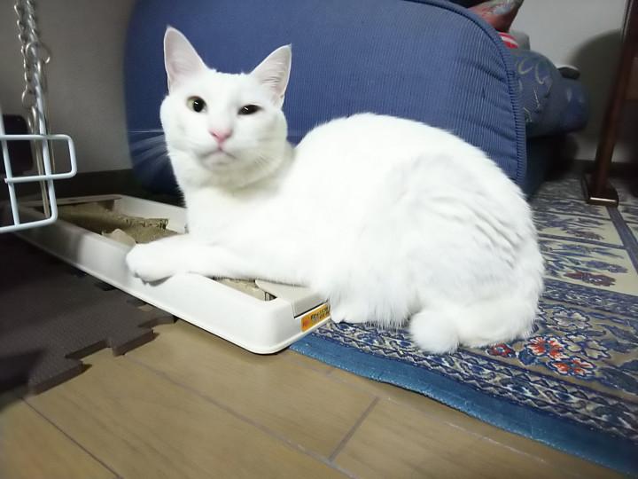 それを夜に戻して、また使わせようとする私。新しい爪研ぎの購入は夫に却下されたので(泣)。