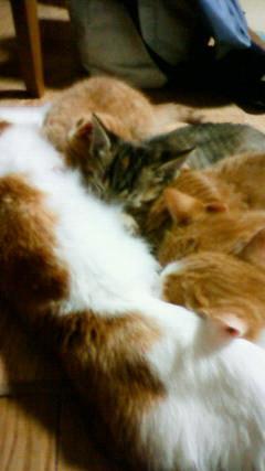 初めての出産、5時間かかりましたが安産で(高校を休んだ息子と見守るなか、感動的でした。)、自然に授乳、お嬢様猫からママに眩しく変身しました。