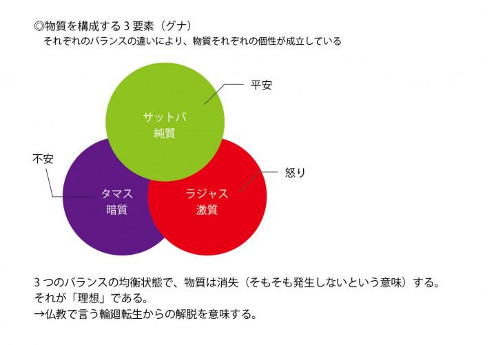 3つのグナ(トリグナ)という、物質(私たちも含む)の構成要素のことです。