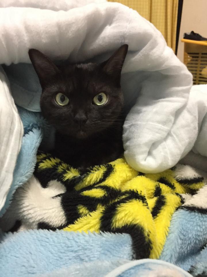 にゃあお姉ちゃまはお一人が好きなのでお母ちゃまのお布団の抜け殻に入ってぬくぬくするのがいいみたいです。