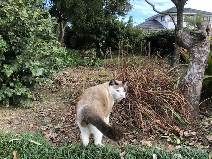 話し込んでいると、白が暇そうにそばに来てウニャウニャとなく。
