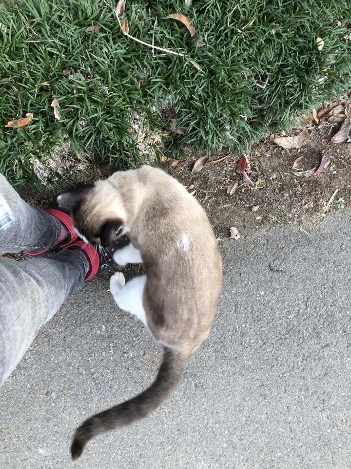 ニャゴニャゴ言いながら寄ってきて、すりごろ〜、すりごろ〜。
