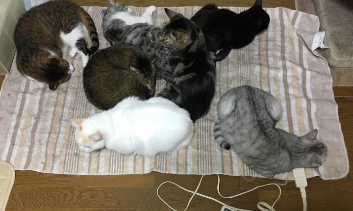 寒い季節になって、我が家は猫団子を作りはじめました。