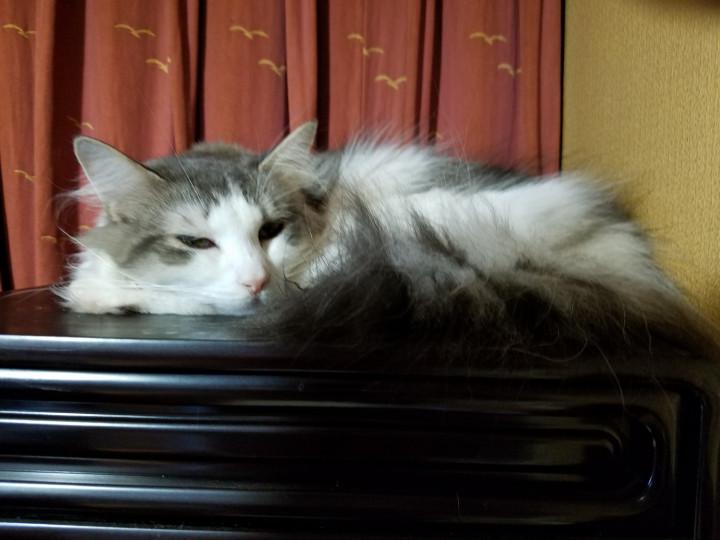 腕の付け根の、一番良い場所で爆睡してたのは、何を隠そう、最年長のサクラ姐さん😸