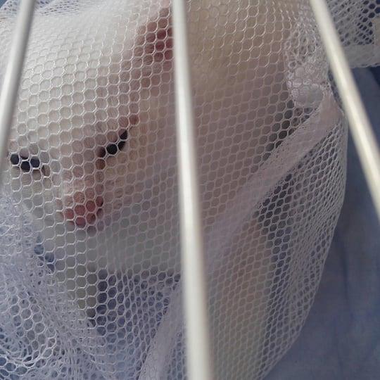 病院なので、一応、洗濯ネットとケージに入って、クロさんとユキちゃんは近所の病院へ☆