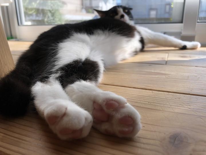どー転がっても暑そうひんやりベッドなのに…抜けた毛勿体無いからそーだ!帽子を作ろう!