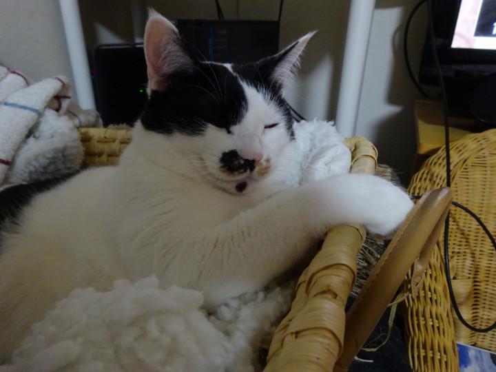 通い猫(雄)の保護を考えて病院へと思ったが慣れておらず捕まえられず。私が手をやられそれから見守り中。慣れないほうが動物虐待の危険性が少しは減るのでこのままでも良いかな!!