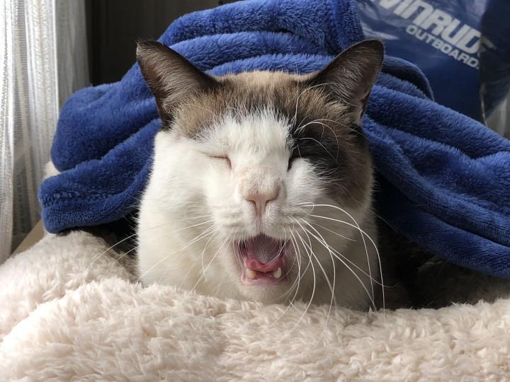 ちょっと寒いかな、フリースをかけると爆睡する。