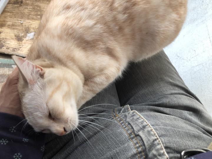 いつも嬉しい時は足元でゴロゴロ言ってくれるけど今日はお膝に登ってきてゴロゴロ〜。
