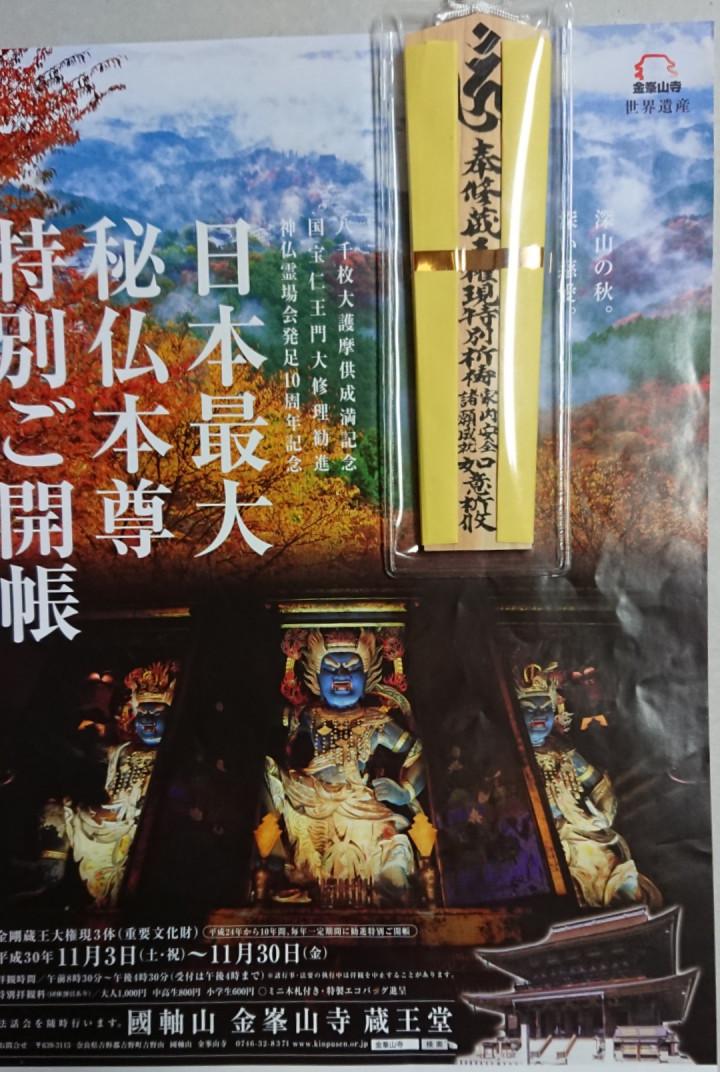金峯山寺にお祀りされる御本尊は、金剛蔵王大権現であります。今から1300有余年前、金峯山山上ヶ岳に役行者が一千日の修行に入り、感得された権現仏であります。