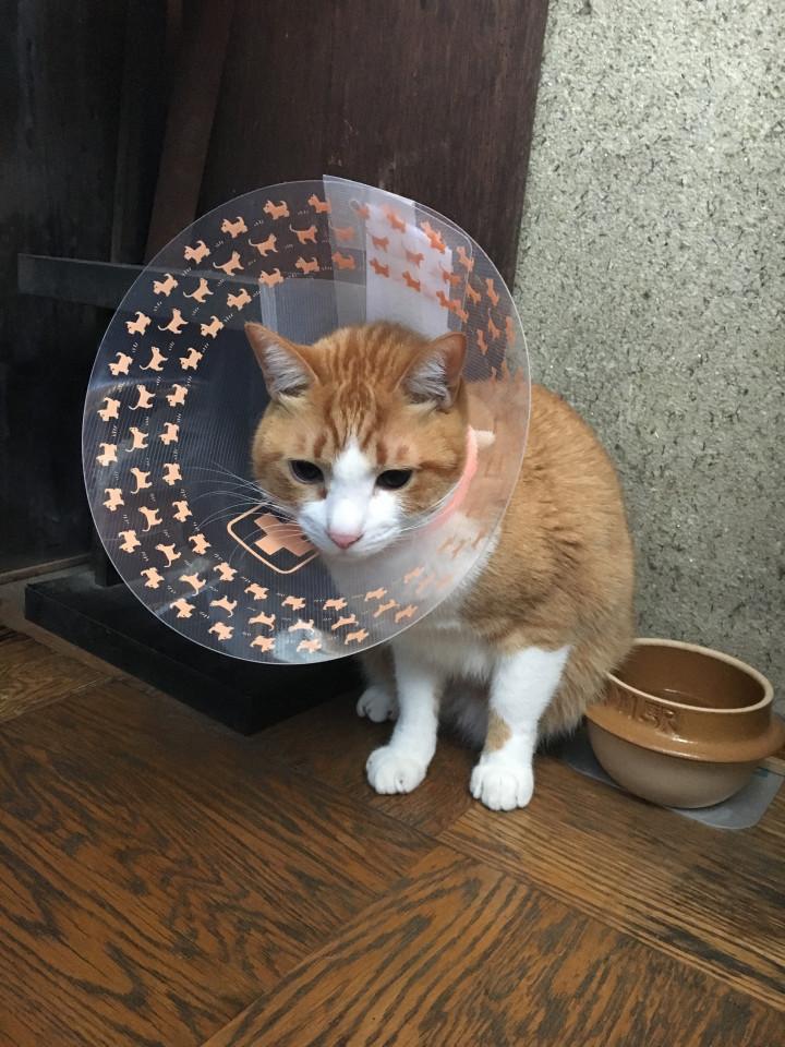 ちゃーちゃんの首にハゲができまして、かいては血が出ての繰り返しで病院に連れて行きました。