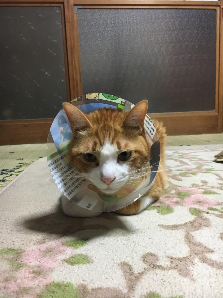 困ったので猫を飼っている知り合いに相談したら、クリアファイルで小さいカラーを作るといいよ!と教えてくれました。